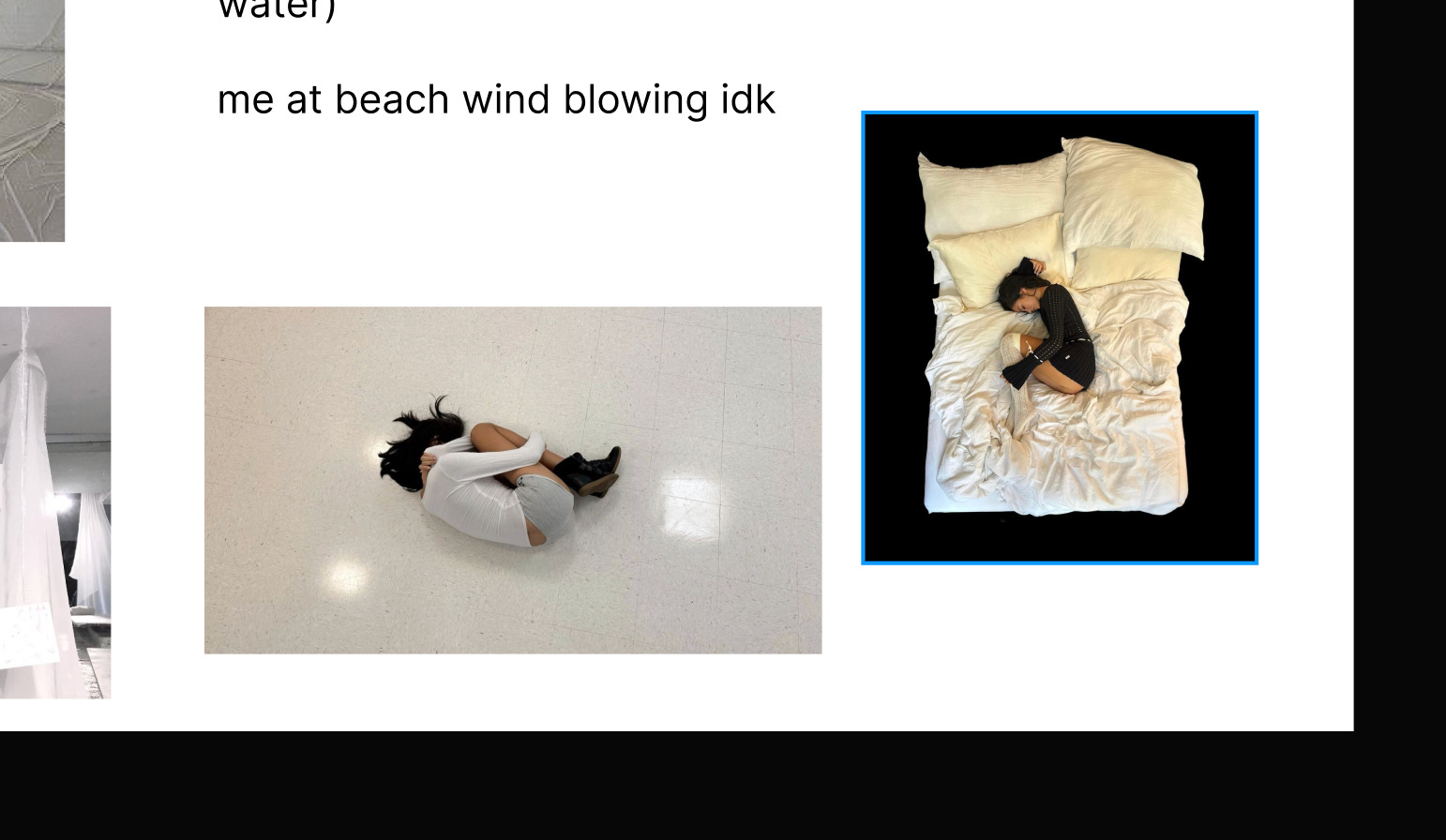 For all the other ones, I’m frankly just not going to respond to it in depth. Your screenshots compared me and you both laying on a BED and running around in the OCEAN. Oh, and also, just plain out WATER. These are objects and places people go to every day to find INSPIRATION, swim and rest. In the bed photoshoot, we actually shot it in my friend’s grandparents home. We didn’t shoot just on the bed, we actually shot in many different areas, including a beautiful grand bathtub and bathroom.